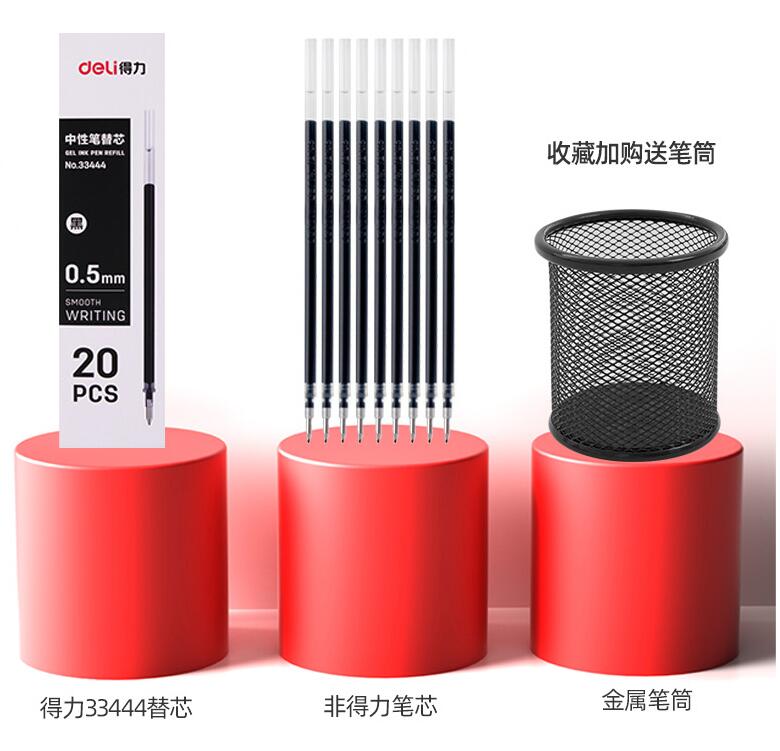 得力中性筆黑色0.5mm水筆圓珠筆 學生用官方水性筆芯紅筆黑筆考試專用筆旗艦店文具辦公用品碳素筆簽字筆