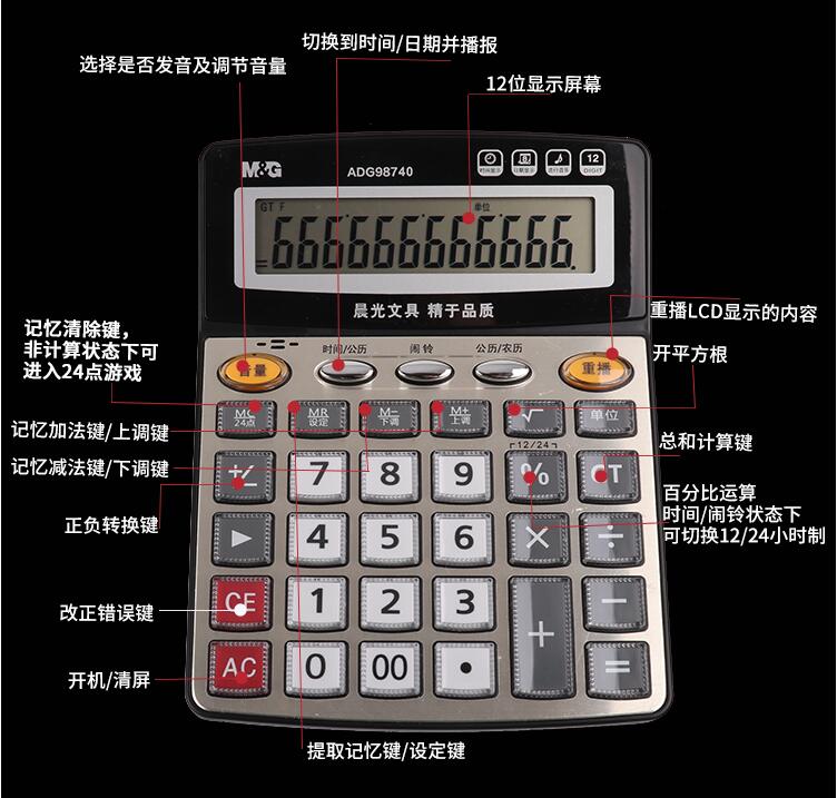 晨光計算器帶語音辦公用會計專用商務計算機辦公室大號大按鍵大屏幕女真人發音財務學生用小號便攜電子記算器